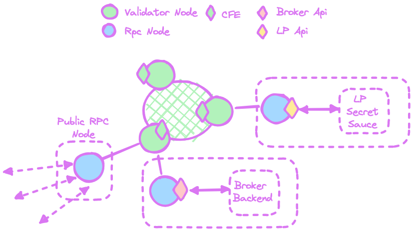 LPs (and Brokers) should ideally run their own local RPC nodes. These nodes connect to the network and expose the LP & Broker APIs locally to the backend they want to use.